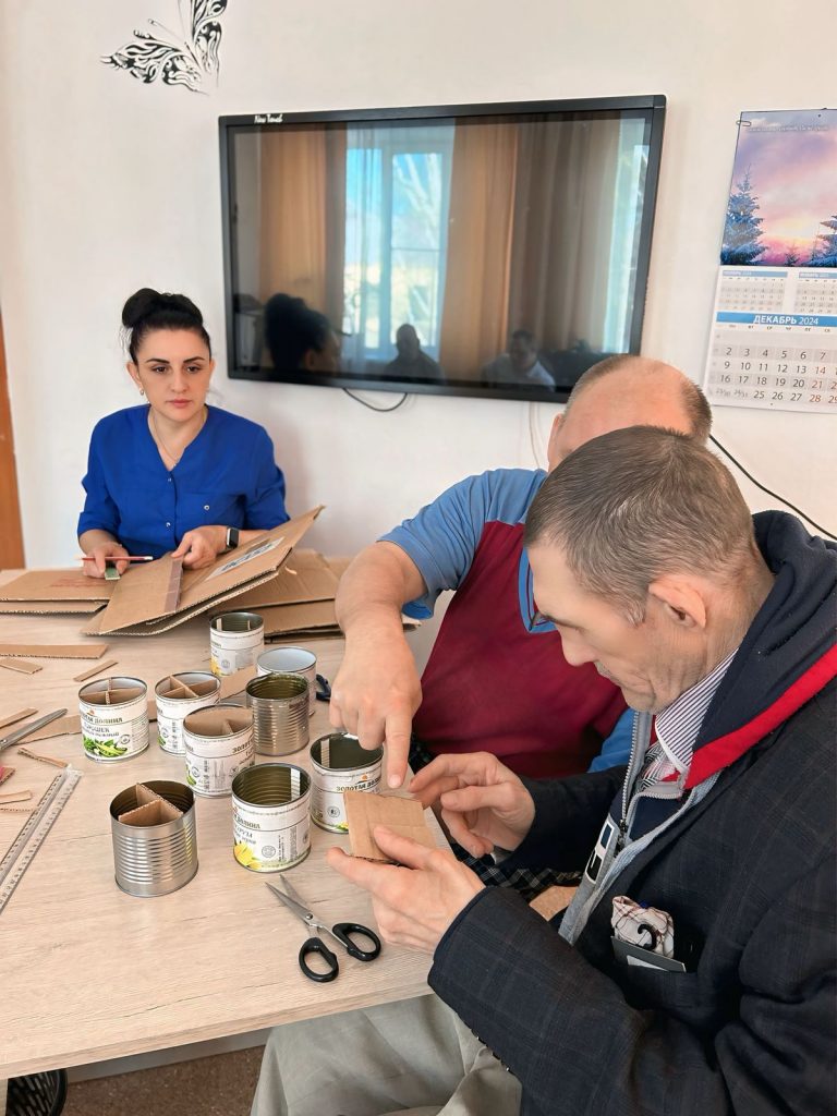 Проживающие отделения с. Булыга- Фадеево КГБУСО «Арсеньевский ПНИ» изготовили партию окопных свечей для бойцов СВО. Окопная свеча изготавливается из жестяной банки, в которую помещают скрученные полоски гофрокартона, просыпают крупными опилками и затем заливают воском. Длительность горения таких свечей от 3,5 до 8 часов. Они используются солдатами для освещения, обогрева, приготовления пищи. Сотрудники отделения так же приняли участие в сборе посылок для бойцов СВО. Кто разводит пчёл и имеет пасеки принесли воск для изготовления свечей, на собранные денежные средства были куплены чай, кофе, конфеты.