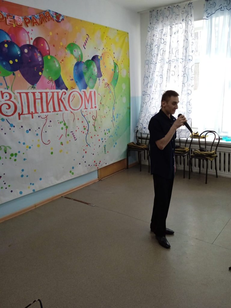 21 февраля 2025 года в КГБУСО «Арсеньевский психоневрологический интернат» прошло праздничное мероприятие, посвященное Дню защитника Отечества. Открыла концертдиректор КГБУСО «Арсеньевский ПНИ» Егорова О.А. с теплыми словами поздравлений и благодарности в адрес почетных гостей ветеранов-участников боевых действий СВО, воинов-интернационалистов Чеченской войны, участников «Боевого братства» и всех защитников Отечества. Проживающие интерната исполнили патриотические песни,приняли участие в конкурсах. По окончании мероприятия всем мужчинам ПСУ были вручены памятные и сладкие подарки.