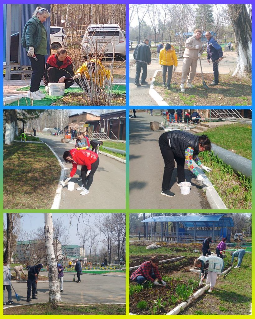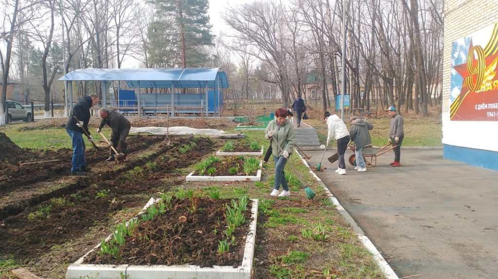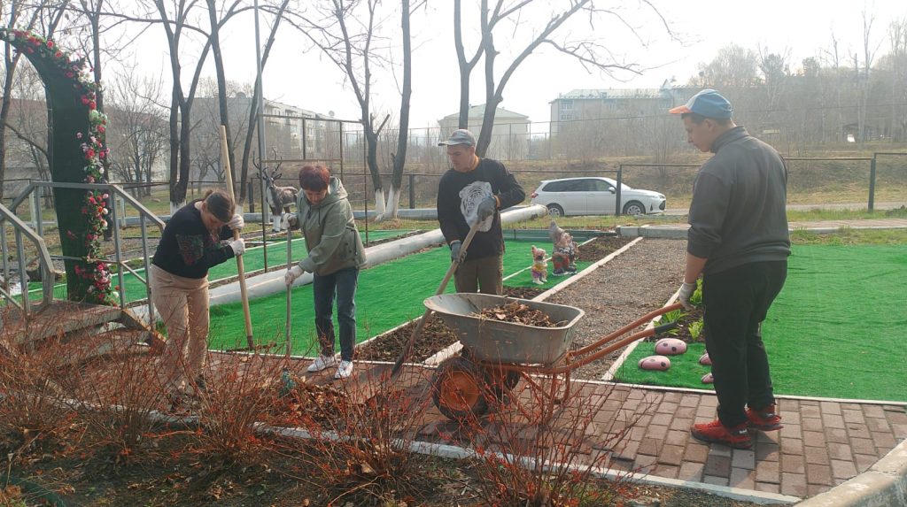 20 апреля 2019 г. клиенты и сотрудники Арсеньевского психоневрологического интерната приняли участие во Всероссийском субботнике «Зеленая весна — 2019». Солнечная погода позволила провести весенние работы по уборке и облагораживанию территории в большом объеме: ребята приводили в порядок цоколь здания, убирали мусор и листву, перекопали и подготовили под посадку цветники и грядки.