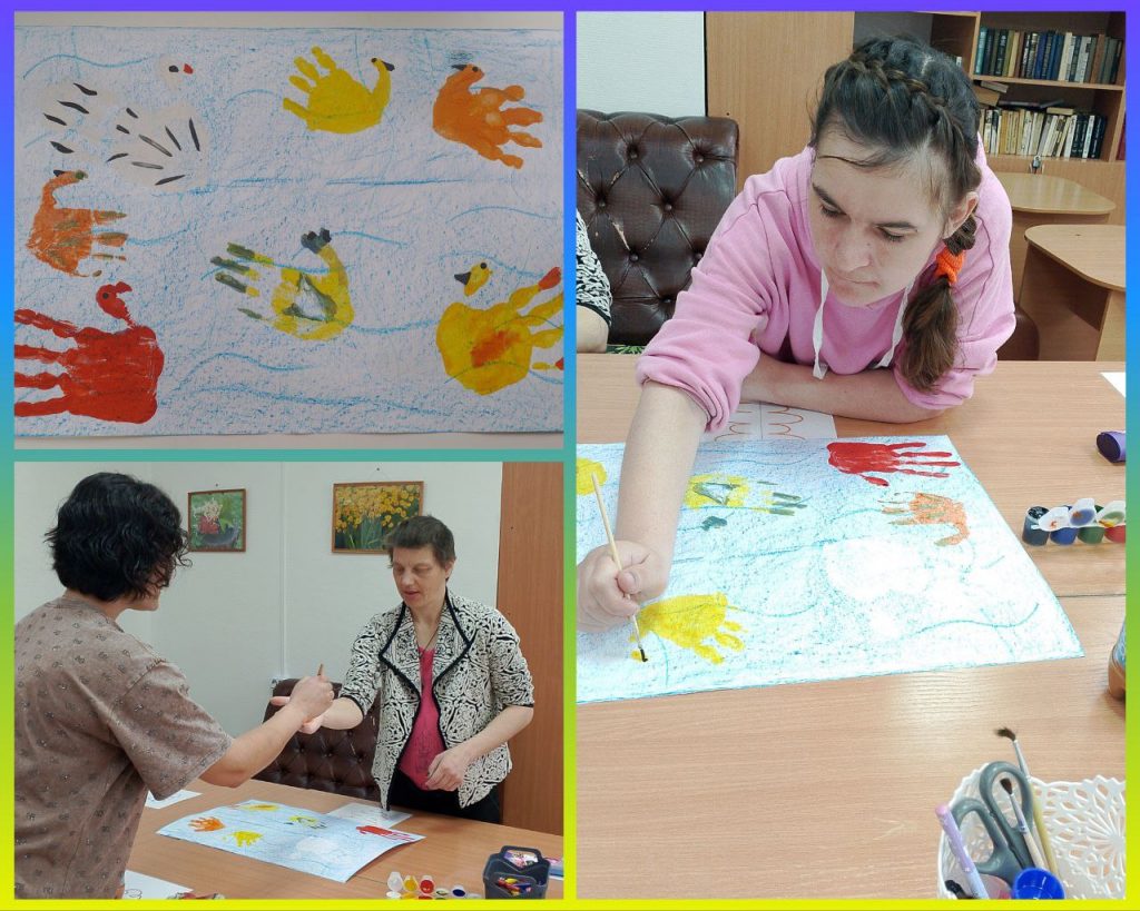 В конце занятия с помощью «волшебных ладошек», мы изобразили смешных и забавных уточек и утят🦆