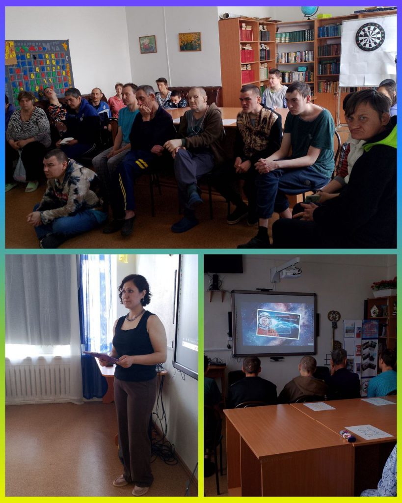 Проживающие интерната посмотрели видео — фильм «Удивительные тайны космоса», после провели викторину «Знатоки космоса».