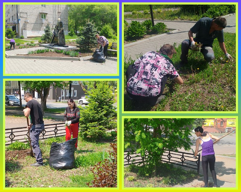 🥀»Волонтеры экологии» КГБУСО «Арсеньевский ПНИ» приняли участие в благоустройстве клумб возле памятника Герою России О. А. Пешкову.