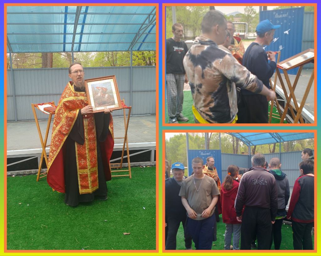 В рамках программы «Радость и свет православия» проживающих КГБУСО «Арсеньевский ПНИ» с молебном посетил отец Варсонофий.