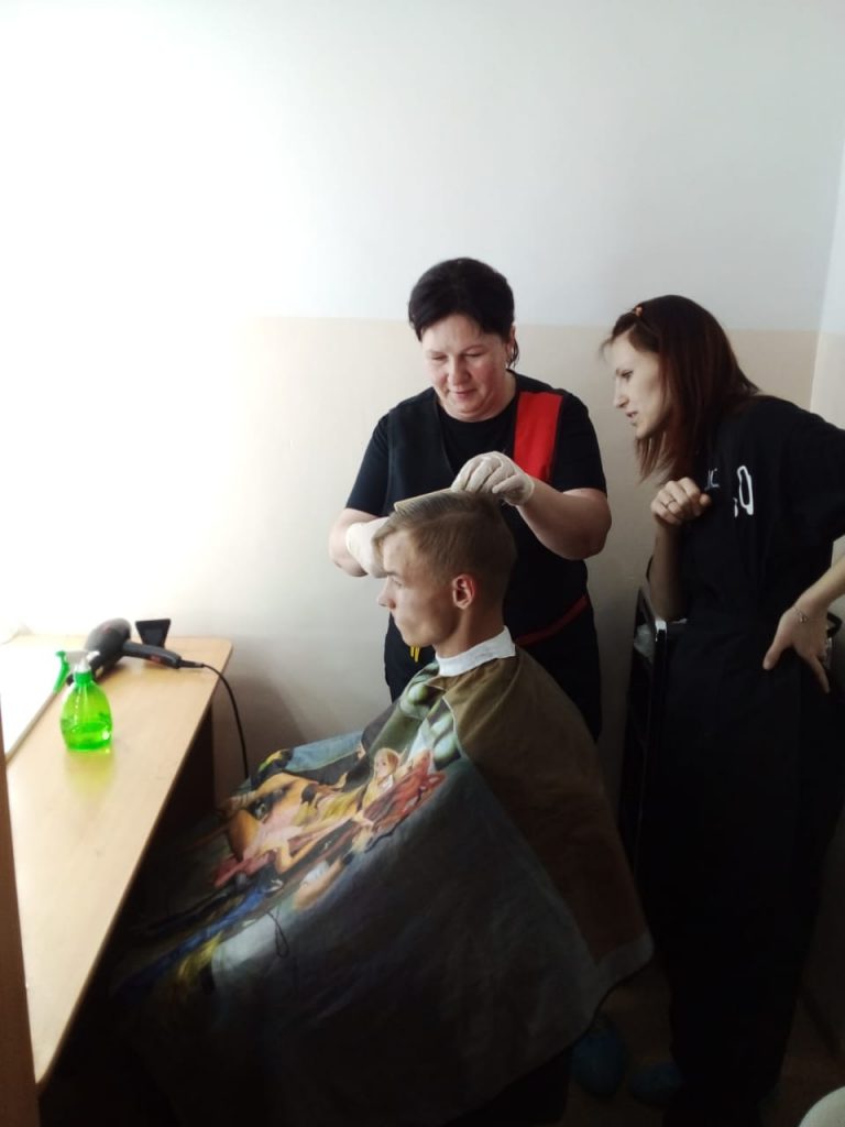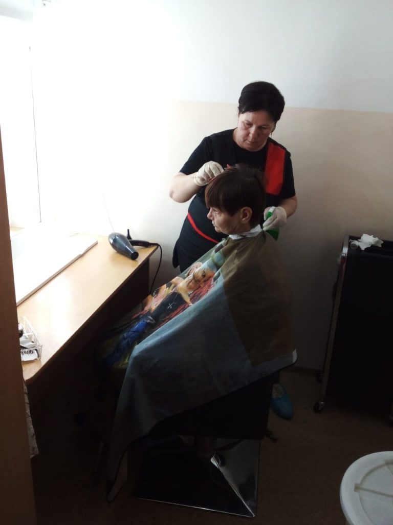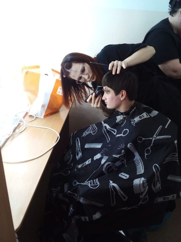 Яна, постоянный помощник в создании красоты для проживающих интерната. Яна проводит бесплатные стрижки и учитывает пожелания проживающих.