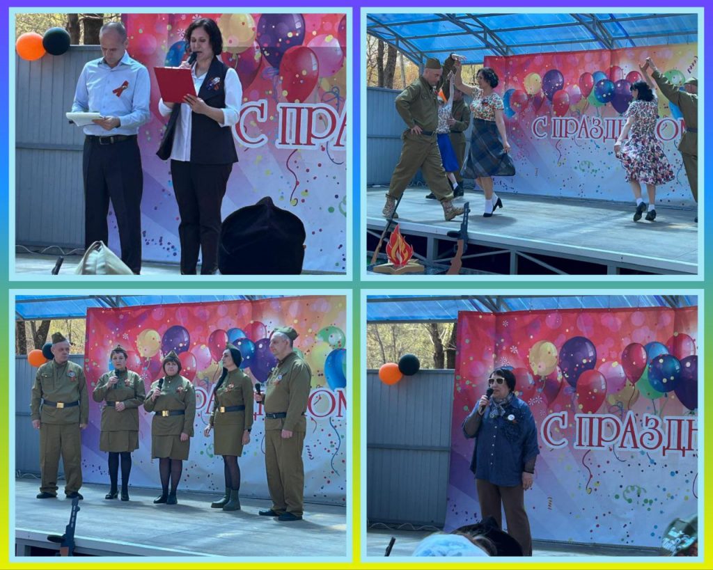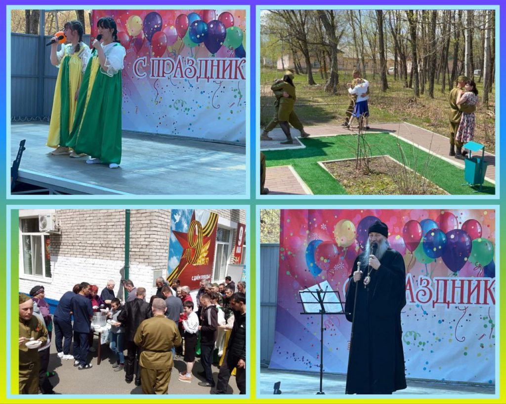 7 мая состоялся большой праздничный концерт, приуроченный к празднованию Дня победы, на который были приглашены Совет ветеранов Арсеньевского городского округа, члены попечительского совета интерната, общество инвалидов, общественная благотворительная организация «Арс Надежда», представители казачьего войска Давбихинской станицы. Со сцены звучали как всеми любимые песни военных лет «На безымянной высоте», «Путь дорожка фронтовая», «Журавли», «Я люблю тебя жизнь», так и современные «А закаты алые», «Русский парень». Ребятам представилась возможность проявить смекалку и боевой дух в подвижных играх «Партизаны», «Перенеси раненного». После концерта мероприятия продолжились на улице. Все присутствующие выпустили в небо 45 шаров Победы, станцевали зажигательный танец флеш моб «Катюша», отведали солдатской каши на привале в передвижной полевой кухне, а также исполнили караоке песен военных лет.