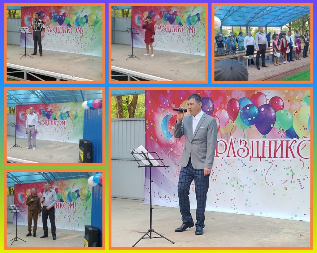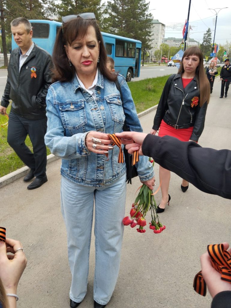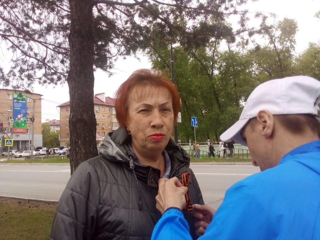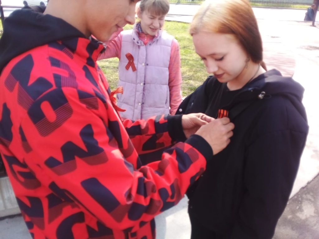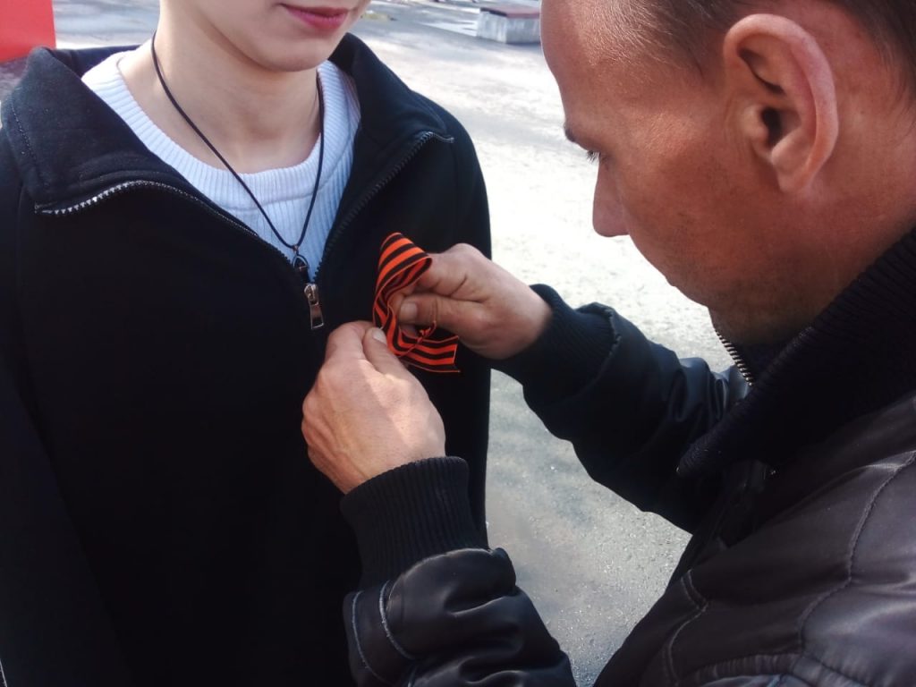Перед началом торжеств, посвященных дню Победы, проживающие раздали «Георгиевские ленты» (символ героизма, мужества и стойкости народа, подвигов защитников Отечества в ходе военных действий и при выполнении других задач по защите Отечества) жителям города.