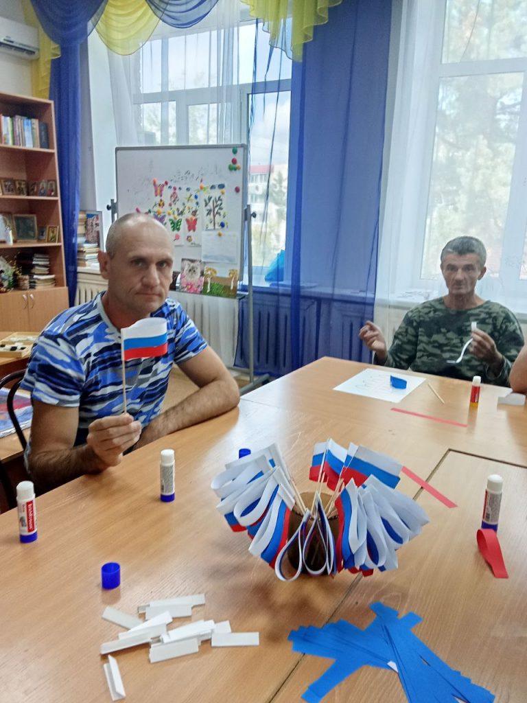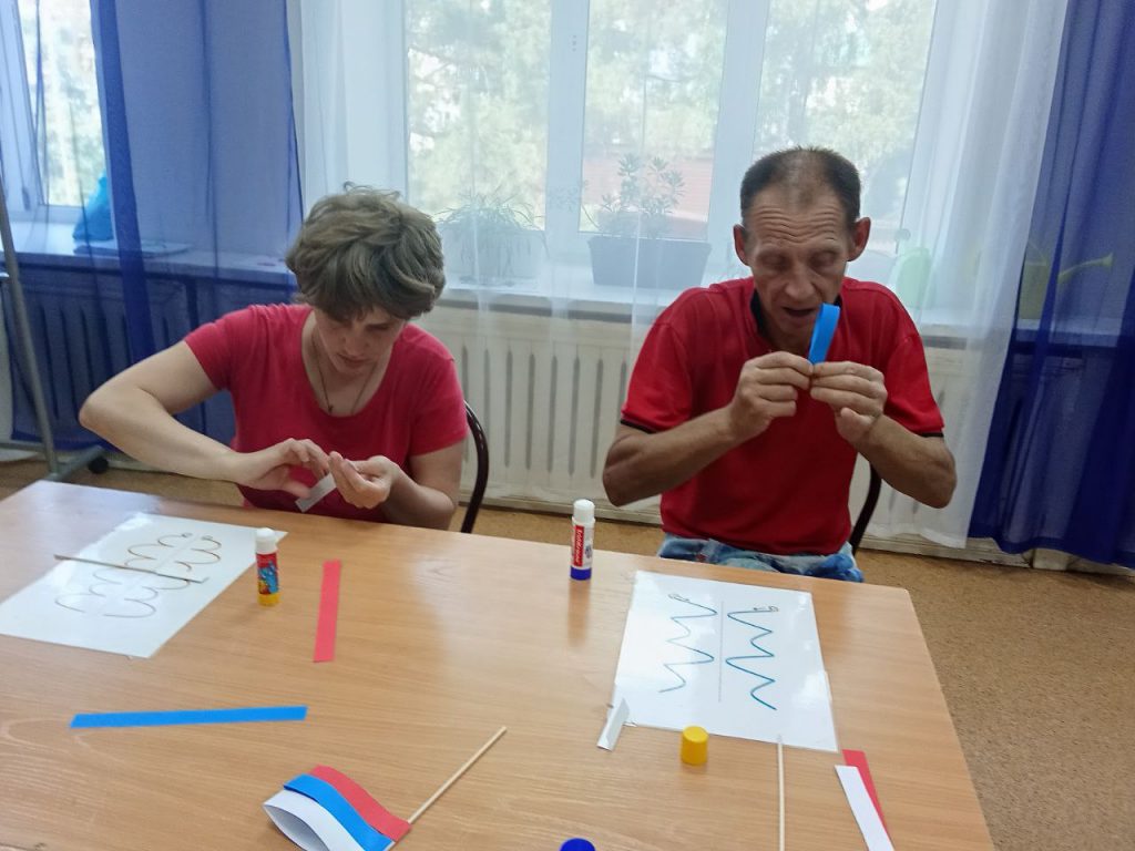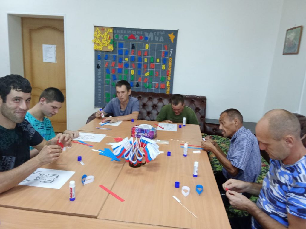 22 августа, в День Государственного флага Российской Федерации, проживающие интерната посмотрели видеофильм «История создания флага РФ», в ходе которого узнали историю флага, значение цветов, где и как шьют триколор.