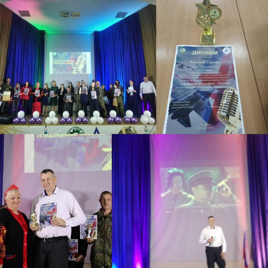В год Защитника Отечества и в честь героев СВО, 27 ноября на базе Автомобильно-технического колледжа состоялся краевой инклюзивный конкурс патриотической песни «Золотой микрофон 2025» под девизом «Поддержи наших»!