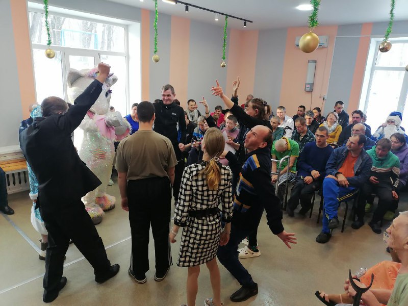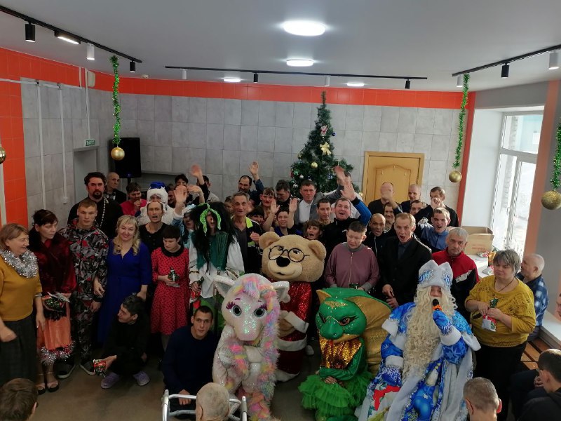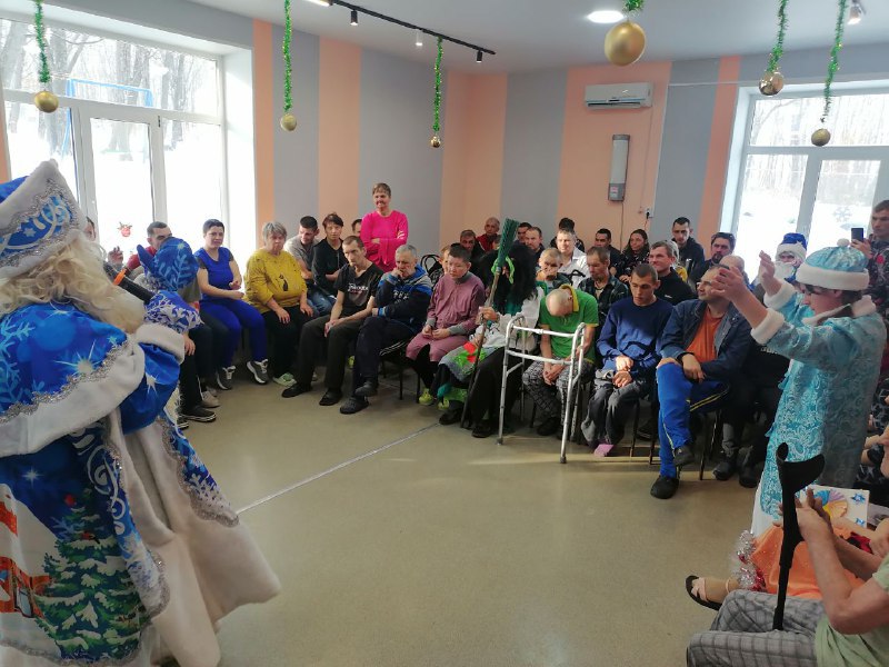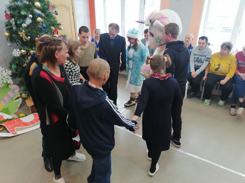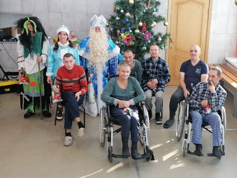 31 декабря 2025 года с наступающим Новым годом, получателей социальных услуг приехало поздравить праздничное агентство «Империя праздника». Дед Мороз и ростовые куклы (символ уходящего года Змея Шушера, Мышонок Пи, символ наступающего года Лошадка Поня и др.сказочные персонажи) устроили для проживающих праздник с дискотекой и конкурсами. Своё песенное мастерство, показали и проживающие интерната, исполнив песни собственного сочинения, а также советских и российских исполнителей. Весь праздник прошел для проживающих в атмосфере веселья, добра и танцевального настроения!