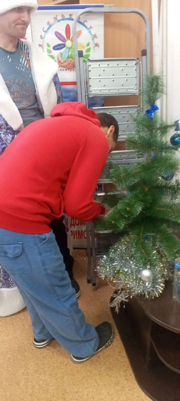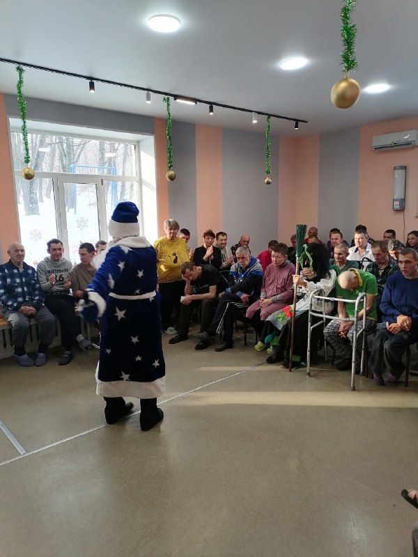 29 декабря 2025 года проживающих интерната, с новогодними поздравлениями, посетили Дед Мороз и Снегурочка, а также сотрудники Управления спорта администрации Арсеньевского городского округа. К поздравлениям, Дед Мороз и Снегурочка вручили для проживающих интерната сладкие подарки.