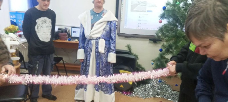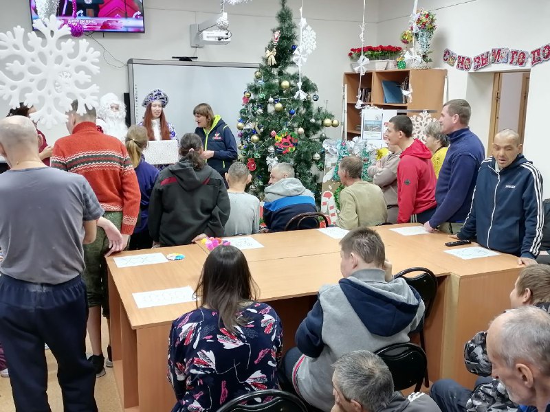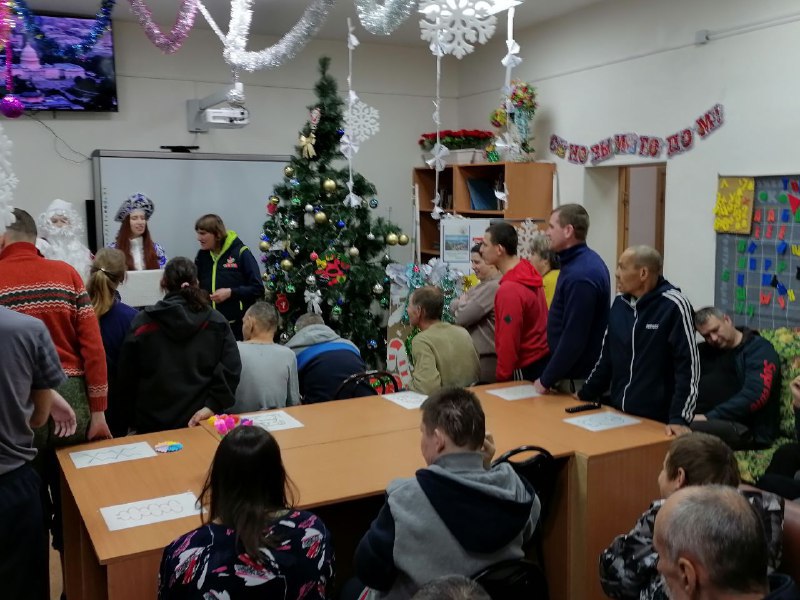 24.12.24г. проживающих КГБУСО «Арсеньевский ПНИ» с презентацией о традиции празднования Нового года, посетили сотрудники МБУК «Централизованная библиотечная система им. В.К. Арсеньева». Проживающим рассказали о становлении традиции праздновать Новый год 1 января, о том как в старину отмечали Новый год и в какие дни, как назывался праздник Нового года на Руси.