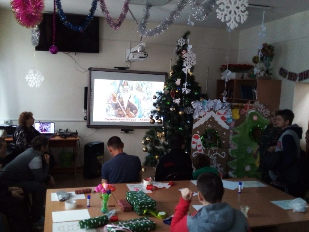 23 декабря 2025 года проживающих интерната посетили сотрудники МБУК «Централизованная библиотечная система им. В.К. Арсеньева» с презентацией об истории главного участника Нового года — Деда Мороза. Проживающие узнали откуда в Россию пришел Дед Мороз, о том как в различных странах зовут Деда Мороза и много других интересных фактов.
